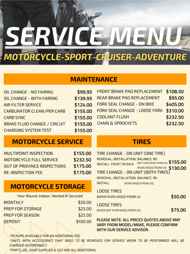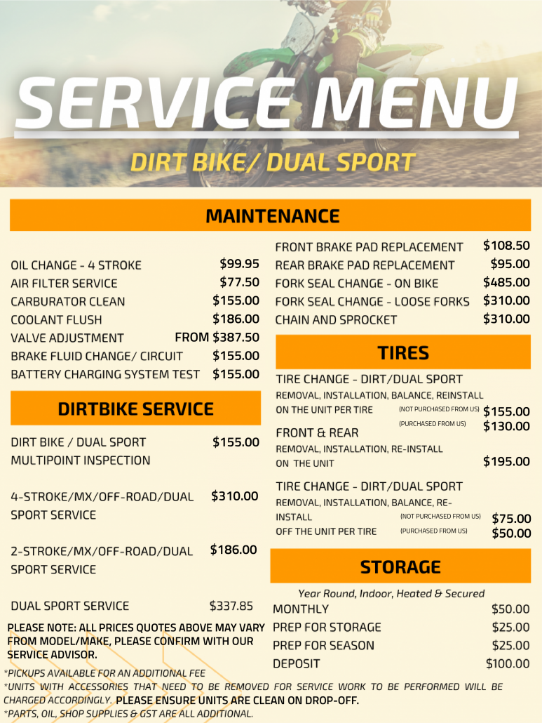 Conveniently located down town, All Season Motosports is a full servicing shop that services all major brands on the market. Motorcycles, ATV’s, Snowmobiles. We do it all!